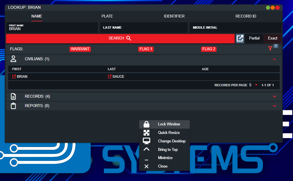 Popout windows like a lookup, 10-code sheet, etc. can all be easily dragged and resized using the top header in addition to the quick resize tools.