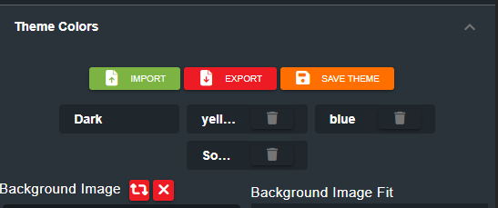 Press **Export** to export the currently selected theme to a JSON file. Or, right-click the **Export** button to export all of your saved themes to a JSON file.