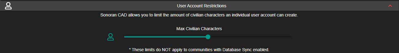 | Max Civilian Characters | This allows you to restrict the number of civilian characters a single user can register. |
