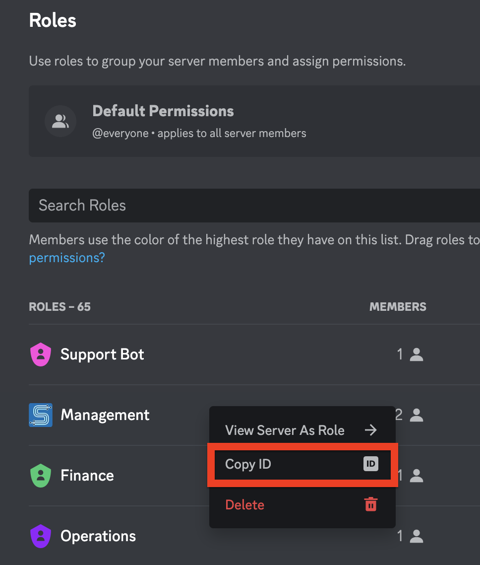 You can copy a Discord Role ID in your Discord server's `Settings` > `Roles` > Right-Click on the role > `Copy ID`