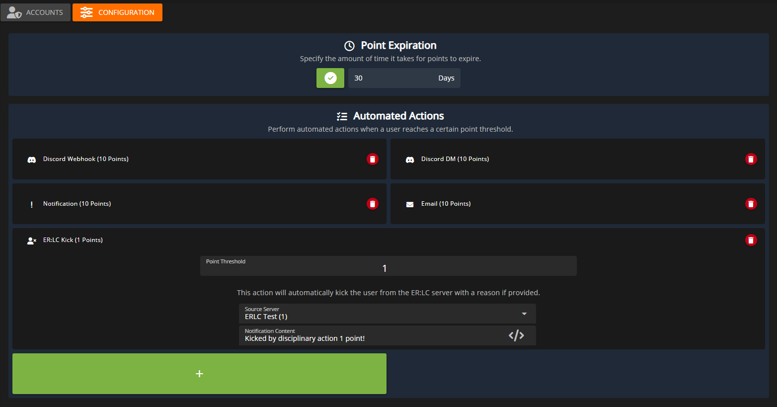 The ER:LC panel extends this functionality by enabling automated kicks or bans when a user reaches the configured disciplinary point limit.