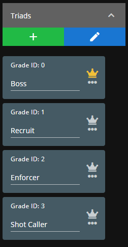 Click any gang to expand the contained grades/ranks.