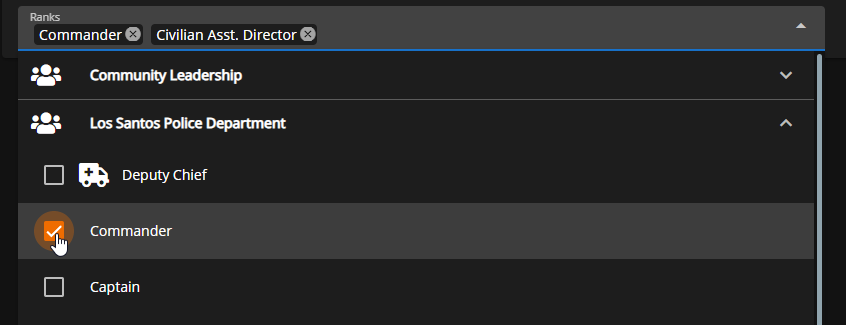 Select the rank(s) which you would like to associate with a given job in-game on the left box, then select the job in the right box.
