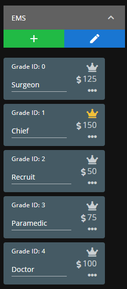 You can adjust the grade name, pay, toggle it as boss, and reorder via drag-and-drop.