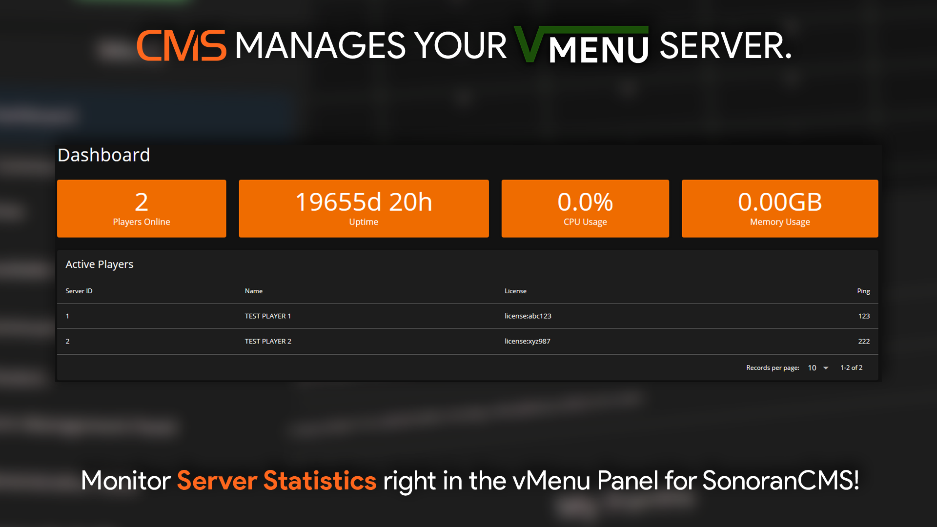 <figure><img src="https://3006847189-files.gitbook.io/~/files/v0/b/gitbook-x-prod.appspot.com/o/spaces%2F-MdBOa9OFjtdqw9FdXli%2Fuploads%2Fgit-blob-35ed94cdba85008d0112a7486635afd8212095bd%2FVMenuPromo07.png?alt=media" alt=""><figcaption><p>Sonoran CMS - VMenu Game Panel Promotional Image</p></figcaption></figure>