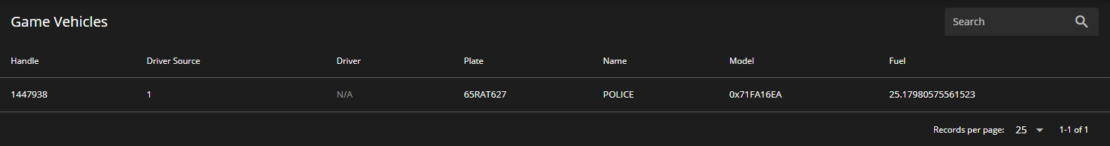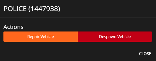 You can view information associated with all vehicles registered in your server. Additionally, if you have the corresponding perms, you can click on any entry to bring up a panel allowing you to Repair or Despawn said vehicle.
