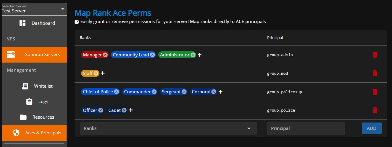 3. Configure Aces & Principals via Server.CFG