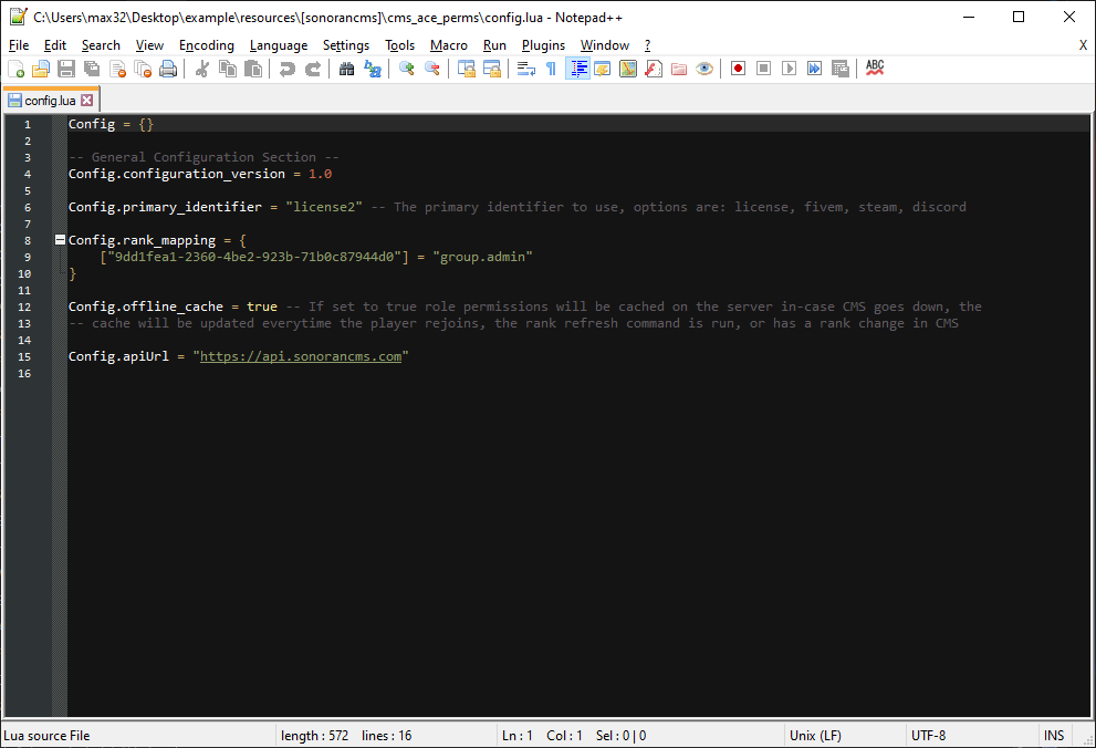 For every Sonoran CMS addon installed, there will be a `config.lua` or `config.json` file present.