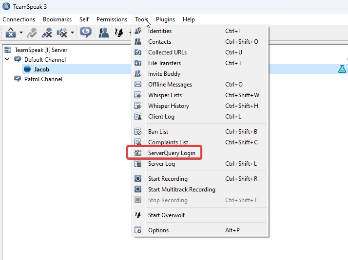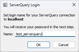 ServerQuery Username/Password: Check the section below for creating a serverquery login