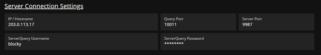 Query Port: By default 10011 for most TeamSpeak servers (especially self-hosted ones). Check with your host provider to be sure