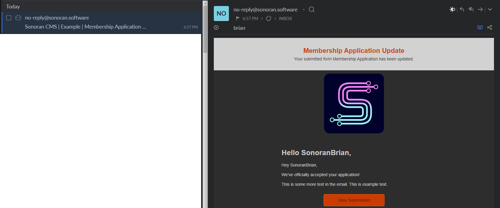 <figure><img src="https://3006847189-files.gitbook.io/~/files/v0/b/gitbook-x-prod.appspot.com/o/spaces%2F-MdBOa9OFjtdqw9FdXli%2Fuploads%2Fgit-blob-16c081bf2d6481fc6fdac8d6ea8f2deb147eda5f%2Fimage.png?alt=media" alt="" width="375"><figcaption><p>Sonoran CMS - Custom Form Emails</p></figcaption></figure>