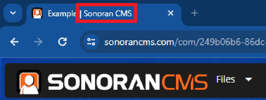 <figure><img src="https://3006847189-files.gitbook.io/~/files/v0/b/gitbook-x-prod.appspot.com/o/spaces%2F-MdBOa9OFjtdqw9FdXli%2Fuploads%2Fgit-blob-35ab1a7c90fb38ac7b278555bbad9e113f19dc0e%2Fimage.png?alt=media" alt="" width="375"><figcaption><p>Sonoran CMS - Page Title Branding</p></figcaption></figure>