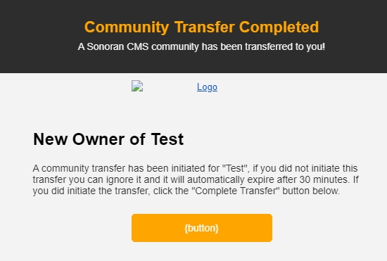 Once you submit for the transfer in Sonoran CMS you'll receive an email regarding the transfer, this is to confirm and finalize it. Once you get the email click the button located on the bottom which will take you to Sonoran CMS to finalize it. You'll be notified upon full load if the transfer went through. The new owner will receive an email stating their new ownership.