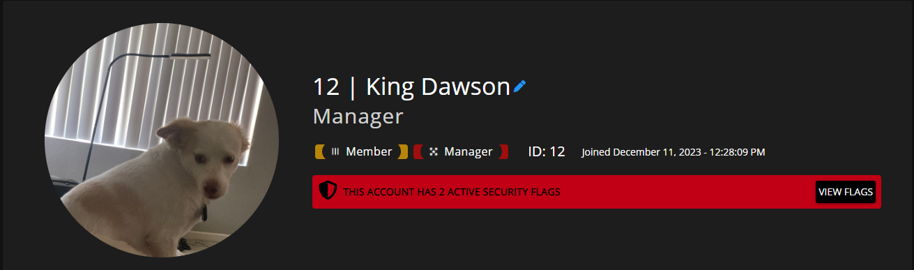 Select the highlighted flag on a user's account avatar to automatically redirect to the security center with their specific flags raised.