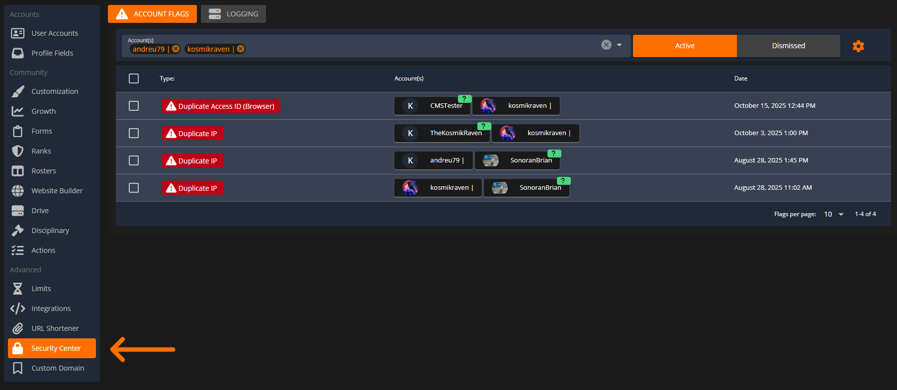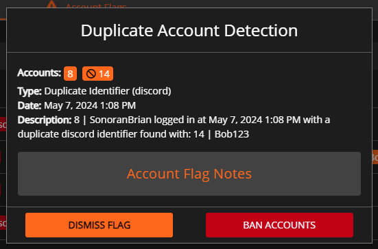 **Alternate Account Detection & Account Flags are only enabled with a Pro Subscription!**
