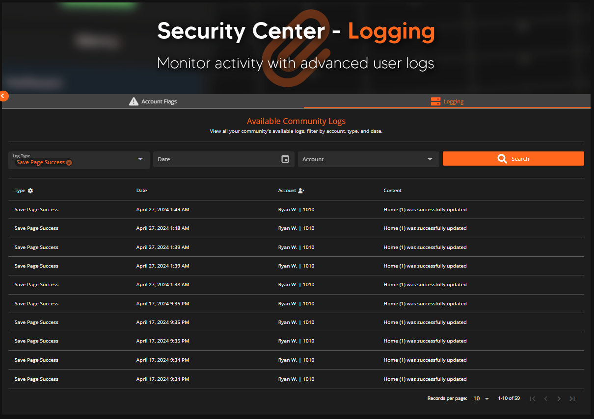 The logging center allows administrators to search and find historical user actions in their CMS community. If a user maliciously deleted a document or updated a webpage, it's easy to find out who and when!