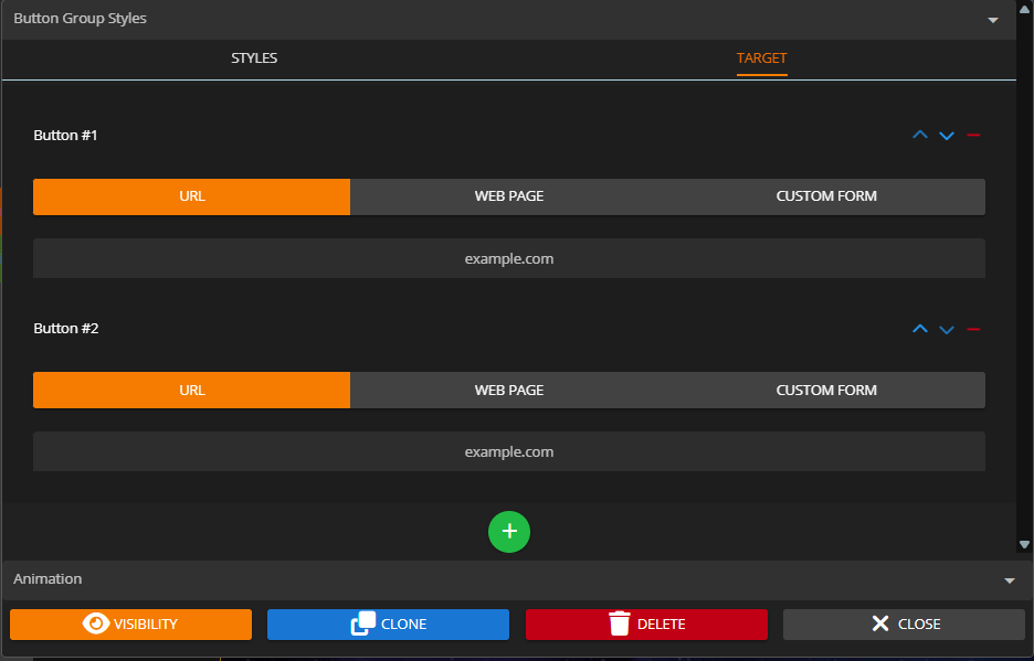 For Button Group elements, you can add as many target links as you need, and re-order or delete them using the controls on the top right of each entry.