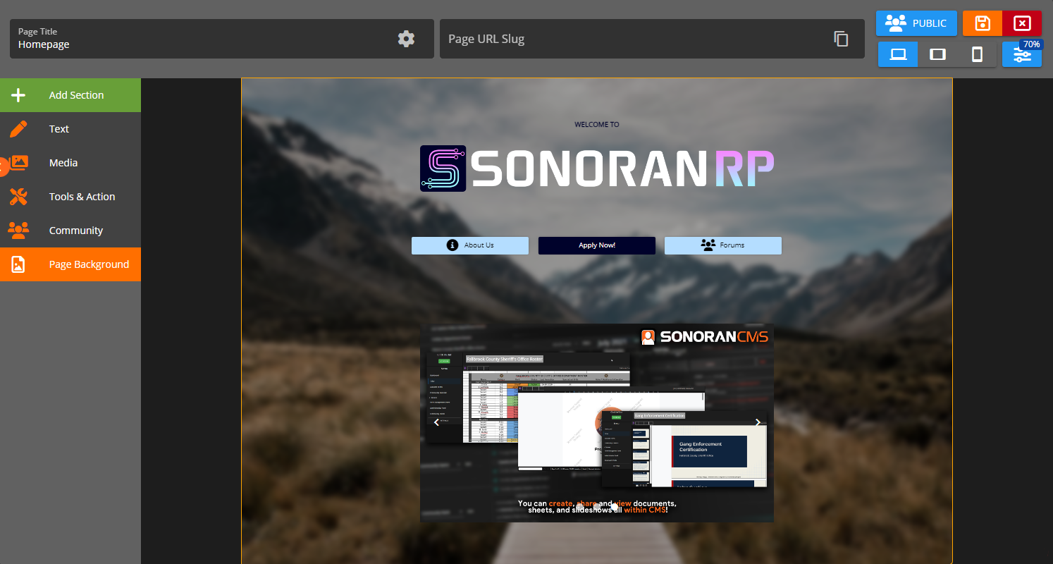 ![Sonoran CMS - Page Editor](https://3006847189-files.gitbook.io/~/files/v0/b/gitbook-x-prod.appspot.com/o/spaces%2F-MdBOa9OFjtdqw9FdXli%2Fuploads%2Fgit-blob-8fe5e2fcc1a16c4b212841444e89f5755b5415d2%2FScreenshot%20\(244\).png?alt=media)