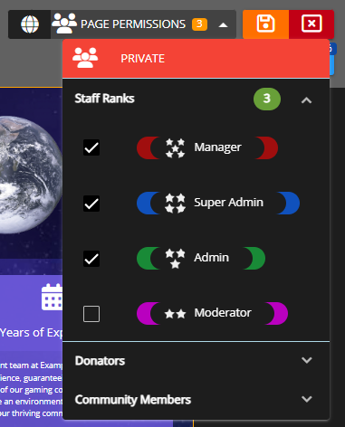 If it's set to Private, you can use the dropdown to the right to select what ranks are allowed to view this page.