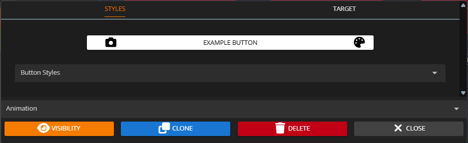 You can customize by clicking on it. The styling of a button is set in the `Styles` tab, the target link a button leads to is set in the `Target` tab.