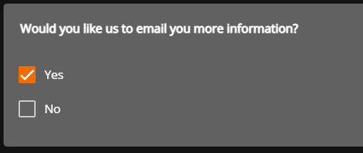 The example action below shows that the email will only be sent if the form submitter selects `Yes` to the question `Would you like us to email you more information?`