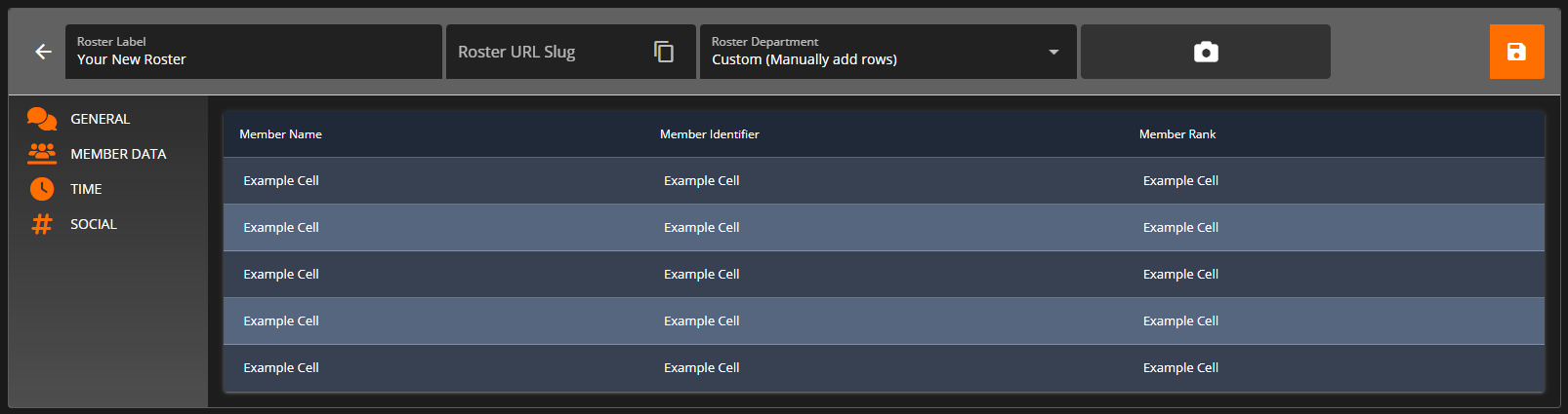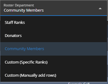 This is an automatic roster type, this will automatically grab all community members that hold a rank within the specified department and will automatically generate a roster row for each one in the order which the ranks are listed within the department. This still allows you to edit data that's tied to a specific row. For example, if Johnny B. has a row and you want to add a note to the Note column then you can add it and it will be automatically fetched and added to the generated row.