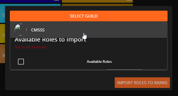 Next, click **Select Guild** and select the linked guild you would like to import roles from. If you have not yet linked a Discord guild to CMS, you must do so through our [Sonoran Discord Bot](https://docs.sonoransoftware.com/bot/tutorials/getting-started).