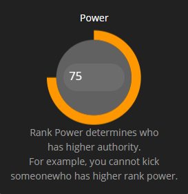 Rank **Power** will be compared to other users as a global user power, this will be utilized to determine if you can modify other individuals. If your power is higher than another individual then you can modify them, if it's less then you cannot.