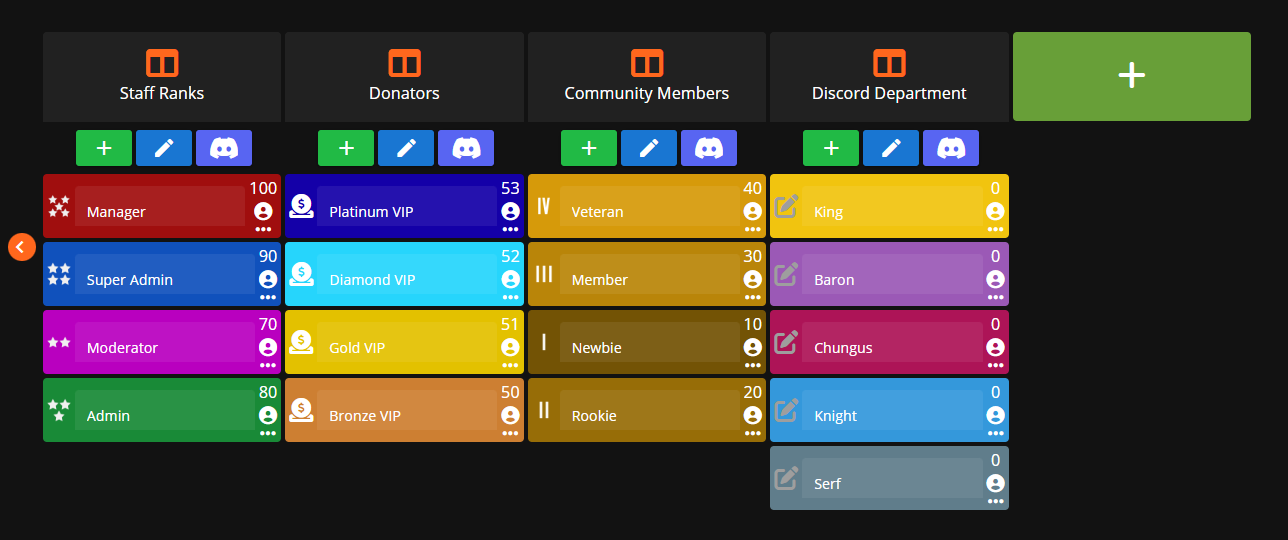 Finally, click **Import Roles to Ranks** at the bottom of the window, and new ranks matching the name and color of the roles will be created: