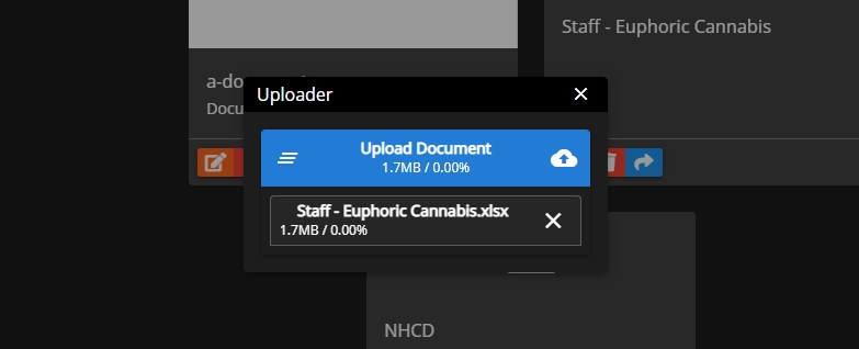 Once you select the file(s) you'd like to upload click the white cloud upload icon to the right of "Upload Document". This will now upload the file and alert you once it's completed.
