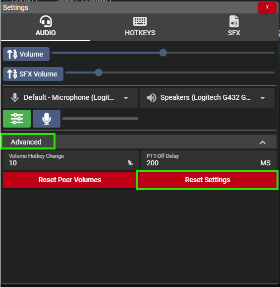 Under the `Advanced` tab, users can select `Reset Settings` to reset to the community defined defaults.