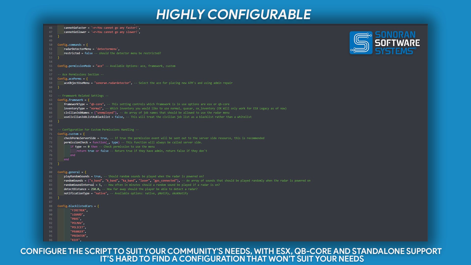 <figure><img src="https://954277862-files.gitbook.io/~/files/v0/b/gitbook-x-prod.appspot.com/o/spaces%2FA1LA3ay59CDyDKnfXPfc%2Fuploads%2Fgit-blob-becf411d47e046592924f61085bddd6d9fffafd6%2Fhighly_configurable.png?alt=media" alt=""><figcaption><p>Sonoran Software - Radar Detector Promotional Image</p></figcaption></figure>