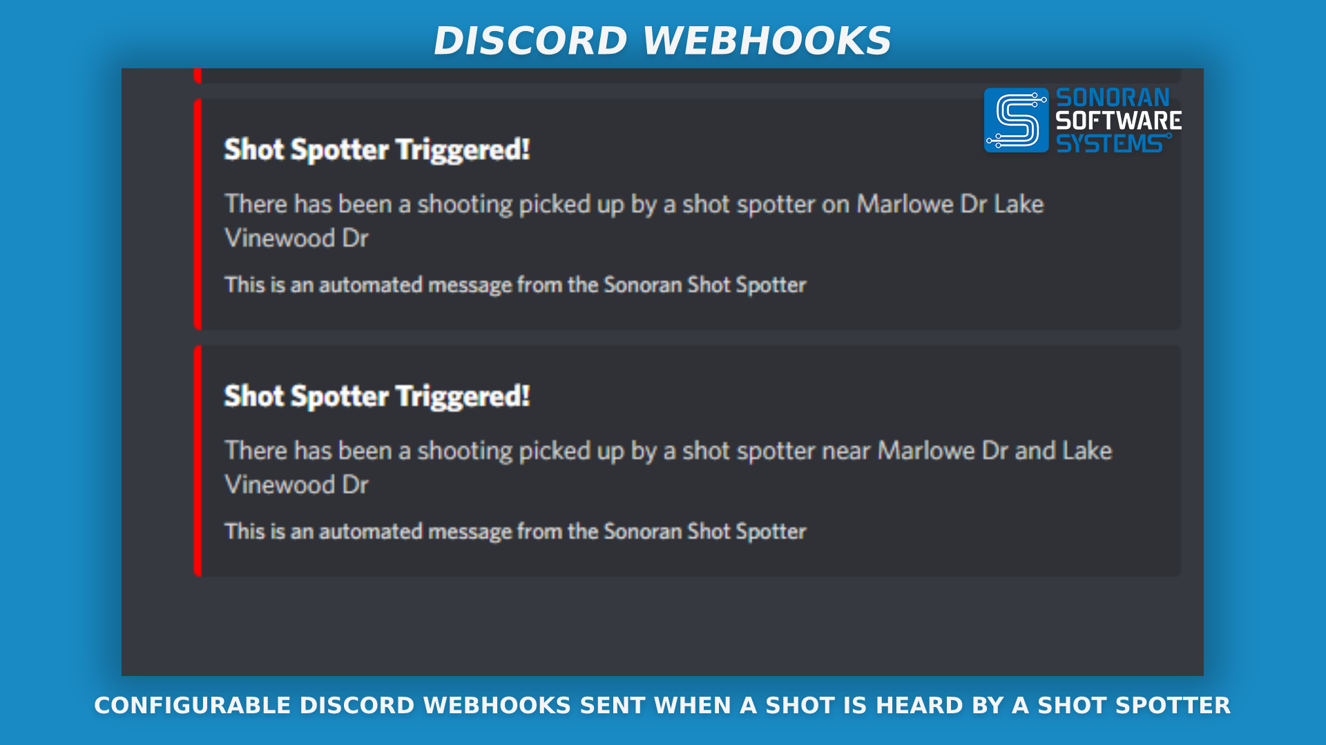 <figure><img src="https://954277862-files.gitbook.io/~/files/v0/b/gitbook-x-prod.appspot.com/o/spaces%2FA1LA3ay59CDyDKnfXPfc%2Fuploads%2Fgit-blob-f2351037ac34910992e7235ef8689f5a256a06fd%2Fss-discord-webhooks.png?alt=media" alt=""><figcaption><p>Sonoran Software - Shot Spotter Promotional Image</p></figcaption></figure>